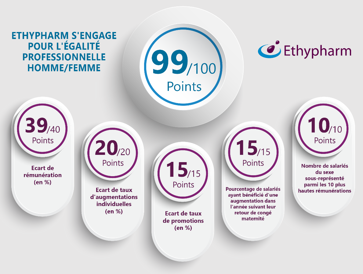 En 2025, Ethypharm S.A.S obtient une nouvelle fois un score de 99/100 à l’Index de l’Égalité Femmes-Hommes.